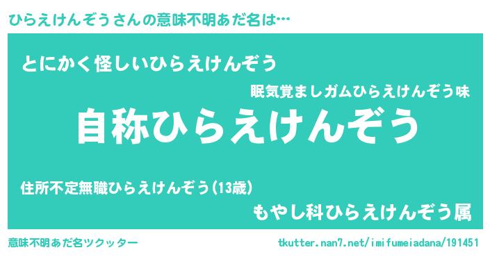 | ヒーロー風カッコイイあだ名 | 『最強戦士ヒラエケンゾウ』 |