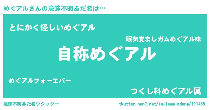 | 女子向けラノベタイトル風あだ名 | 『闇のめぐアル』『めぐアル様がみてる』 |