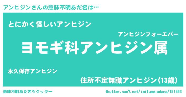 | ポケモン風あだ名 | 『アンキング』『ヒアンヒジン』 |