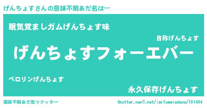 | 欧米人風あだ名 | 『げんちょす・ステッグマイヤー』 |