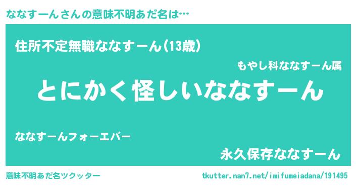 | 男性向けラノベタイトル風あだ名 | 『ななすーんの嫁は女の子じゃないと思った?』 |