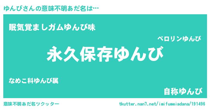 | 男性向けラノベタイトル風あだ名 | 『ゆんびという概念が存在しない退屈な世界 』 |