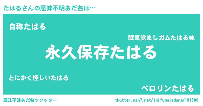 | ヘコむあだ名 | 『たはる(笑)』『たはにゅー』 |