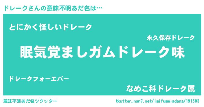 | 男性向けラノベタイトル風あだ名 | 『はたらくドレークさま!』 |