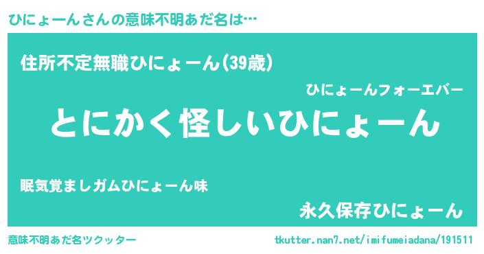 | ポケモン風あだ名 | 『ヒヒニョーン』『ヒーニイ』 |