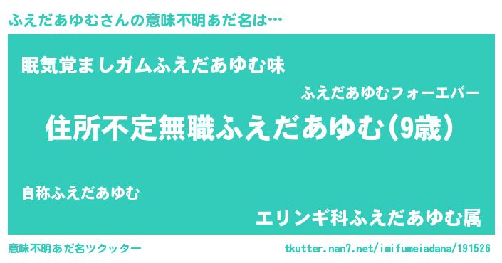 | 男性向けラノベタイトル風あだ名 | 『この素晴らしい世界にふえだあゆむを!』 |