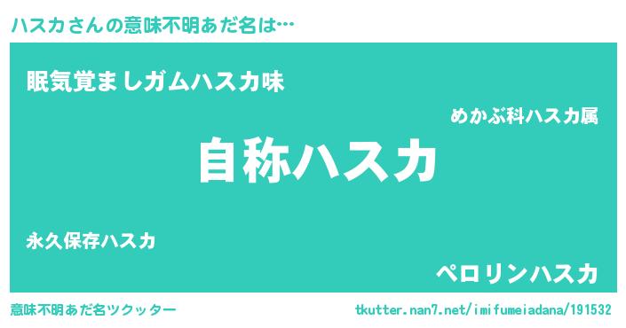 | ヘコむあだ名 | 『ハスもー』『ハスカ(震え声)』 |