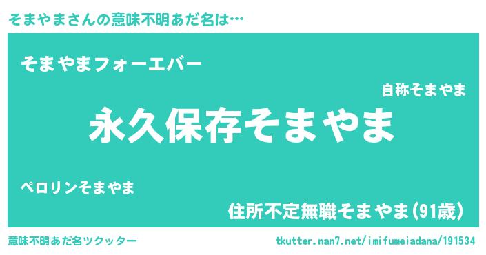 | 男性向けラノベタイトル風あだ名 | 『そまやまという概念が存在しない退屈な世界 』 |