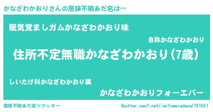 | 男性向けラノベタイトル風あだ名 | 『この素晴らしい世界にかなざわかおりを!』 |