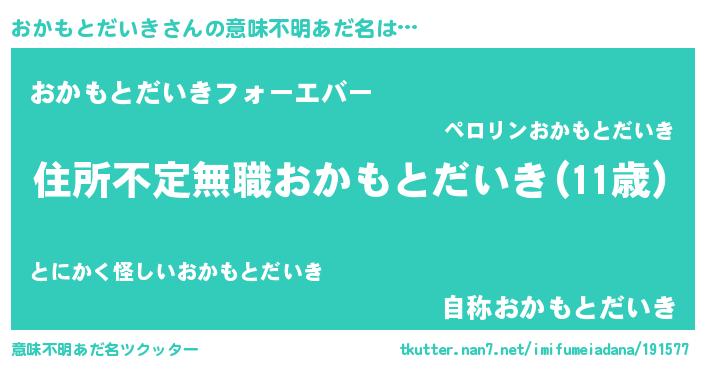| 男性向けラノベタイトル風あだ名 | 『魔弾の王とおかもとだいき』 |