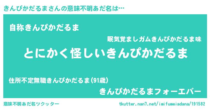 | ポケモン風あだ名 | 『ヒキンピカダルマ』『メロキッン』 |