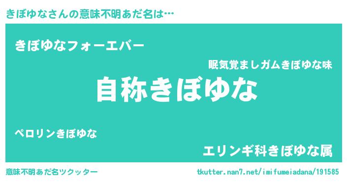 | 男性向けラノベタイトル風あだ名 | 『Re:きぼゆなから始める異世界生活』 |