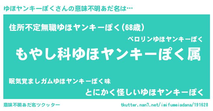 | 男性向けラノベタイトル風あだ名 | 『転生したらゆほヤンキーぽくだった件』 |