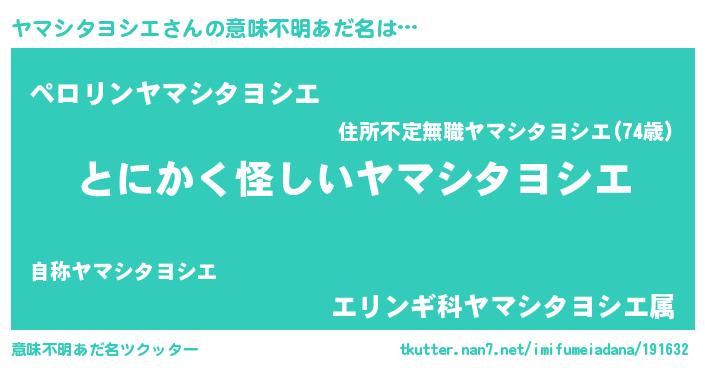 | ポケモン風あだ名 | 『ヤマゴンZ』『ヒヤマシタヨシエ』 |