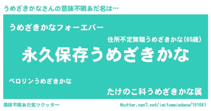 | ヒーロー風カッコイイあだ名 | 『ネオウメザキカナ』『仮面ウメダー』 |