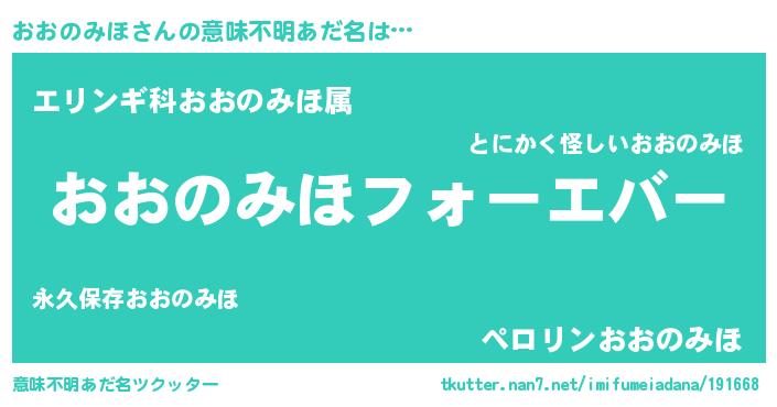 | 欧米人風あだ名 | 『おおのみほクリステル』 |