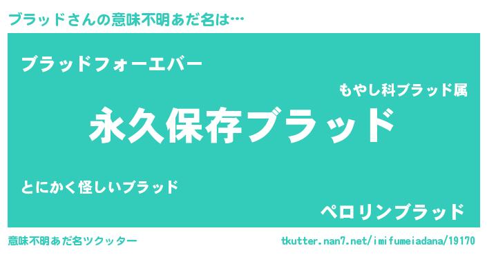 | 男性向けラノベタイトル風あだ名 | 『ブラッドという概念が存在しない退屈な世界 』 |