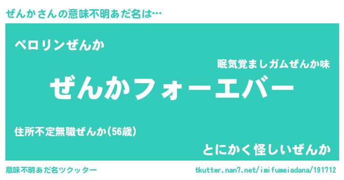 | 欧米人風あだ名 | 『ぜんかクリステル』『マイケルぜんか』 |
