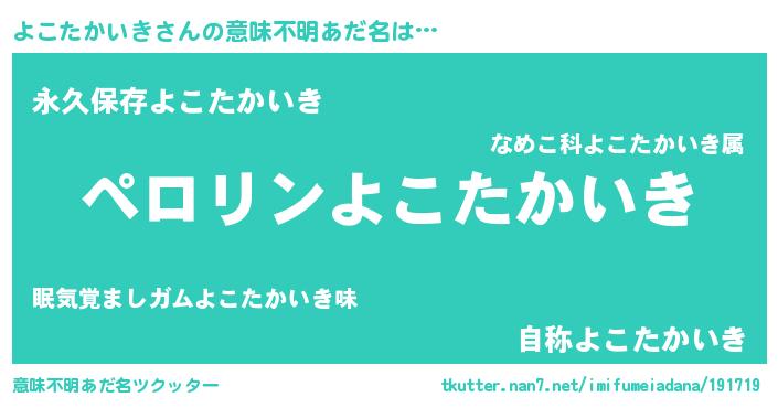 | 男性向けラノベタイトル風あだ名 | 『ヨコタカイキアートオンライン』 |