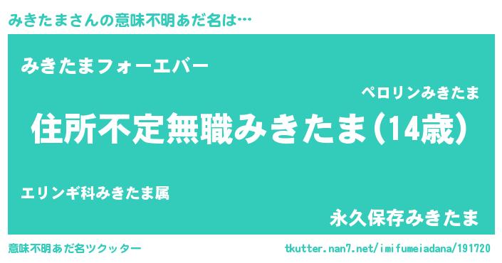 | ポケモン風あだ名 | 『ミーキイ』『ミキタダネ』 |