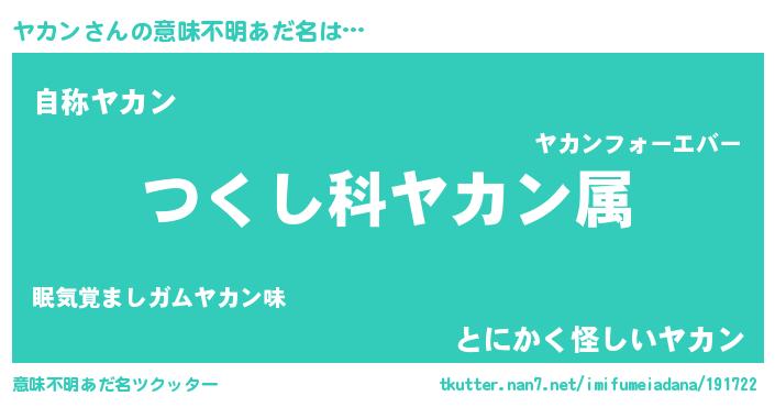 | ヒーロー風カッコイイあだ名 | 『最強戦士ヤカン』『暗黒騎士ヤカ』 |