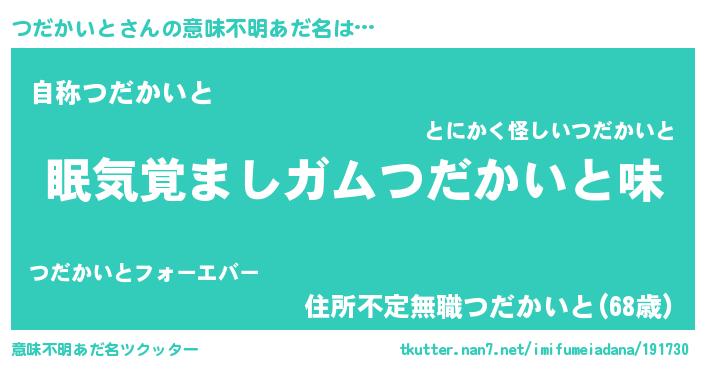 | ヒーロー風カッコイイあだ名 | 『慈愛の使者つだかいと』『仮面ツダダー』 |
