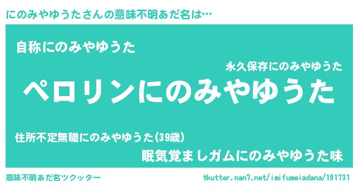 | 男性向けラノベタイトル風あだ名 | 『にのみやゆうたの憂鬱』 |