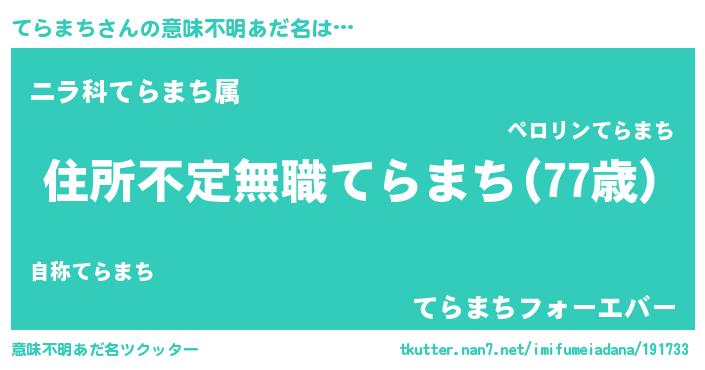 | 肩書あだ名 | 『てらまち教官』『てらまち少将』 |