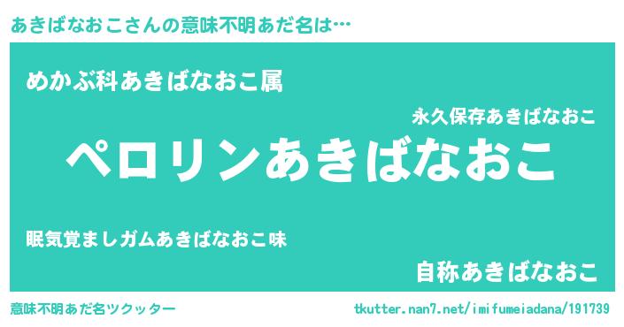 | 胡散臭い通販商品みたいなあだ名 | 『億万長者になれるブレスレット…その名も「あきばなおこ」』 |