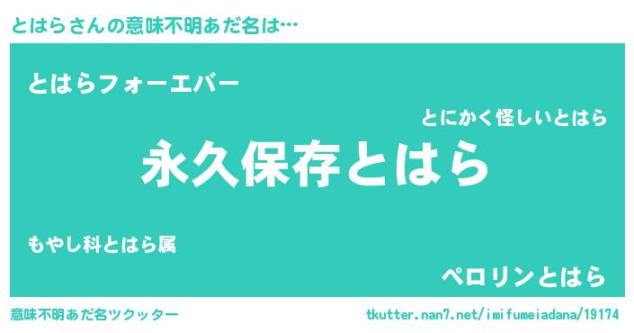 | 男性向けラノベタイトル風あだ名 | 『とはらという概念が存在しない退屈な世界 』 |