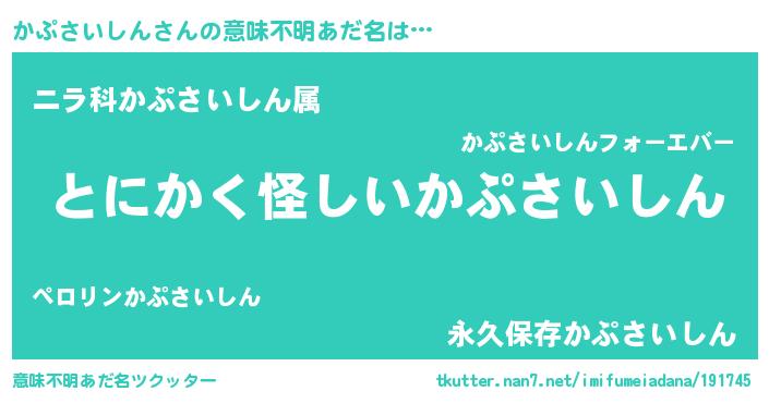 | 男性向けラノベタイトル風あだ名 | 『ダンジョンにかぷさいしんを求めるのは間違っているだろうか』 |