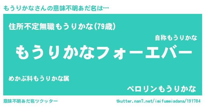 | 欧米人風あだ名 | 『もうりかなクリステル』 |
