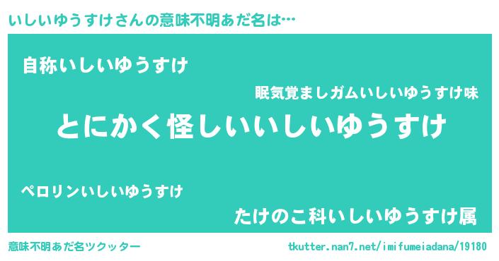 | 男性向けラノベタイトル風あだ名 | 『うちのいしいゆうすけが世界を掌握している!』 |