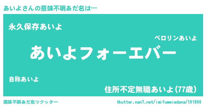 | ポケモン風あだ名 | 『アイヨダネ』『ゼニアイ』 |