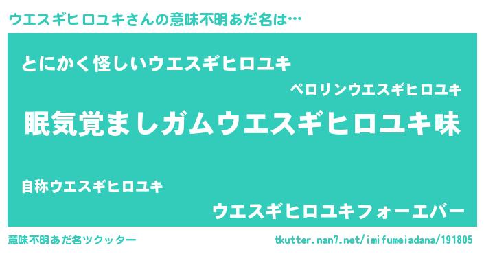 | 男性向けラノベタイトル風あだ名 | 『ノーゲーム・ノーウエスギヒロユキ』 |