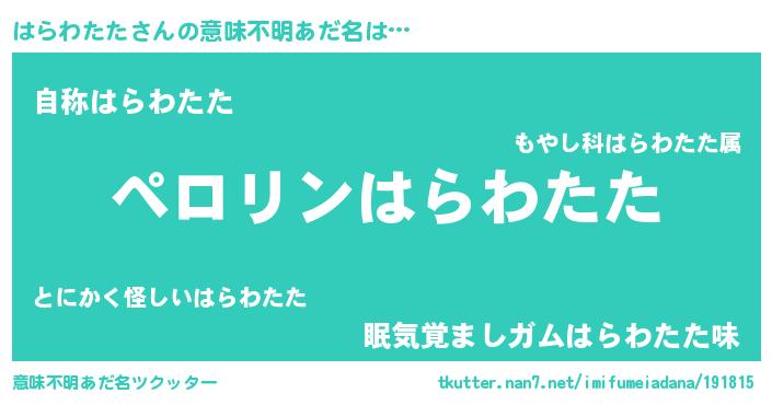 | ヒーロー風カッコイイあだ名 | 『スーパーハラワタタ』『魔戒騎士ハラ』 |