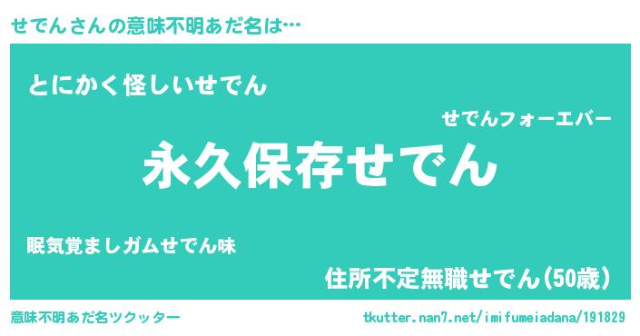 | 男性向けラノベタイトル風あだ名 | 『せでんという概念が存在しない退屈な世界 』 |