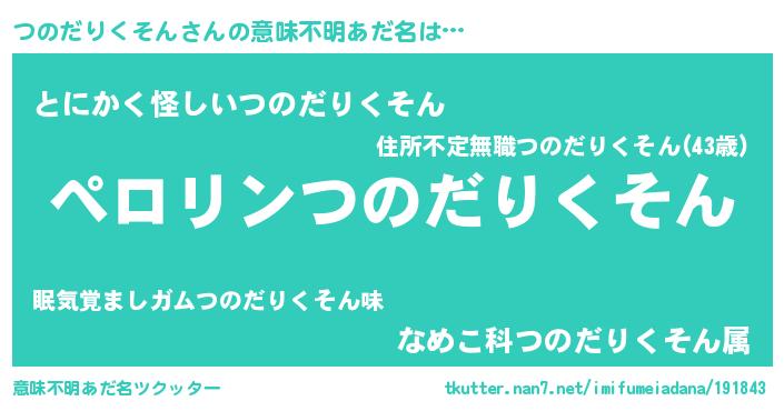 | 男性向けラノベタイトル風あだ名 | 『つのだりくそんの憂鬱』 |