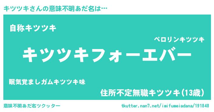 | ポケモン風あだ名 | 『キツツダネ』『キツゴンZ』 |