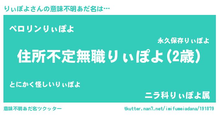 | 女子向けラノベタイトル風あだ名 | 『乙女ゲームの破滅フラグしかない悪役りぃぽよに転生してしまった…』 |