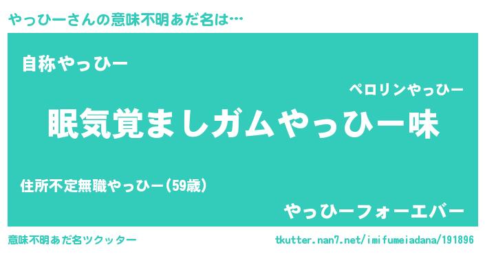 | 欧米人風あだ名 | 『ダニエルやっひー』 |