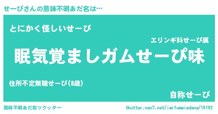 | 男性向けラノベタイトル風あだ名 | 『せーぴに滅ぼされるだけの簡単なお仕事です』 |