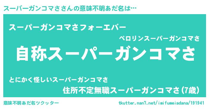 | 女子向けラノベタイトル風あだ名 | 『スーパーガンコマさなんてお断りですっ。』 |