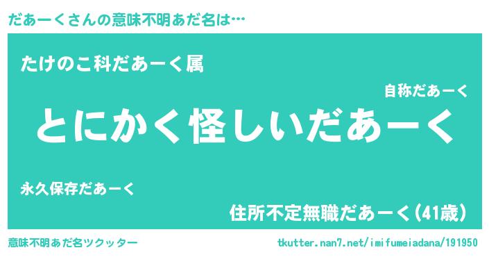 | 料理風あだ名 | 『ポテトとだあーくのキッシュ☆』 |