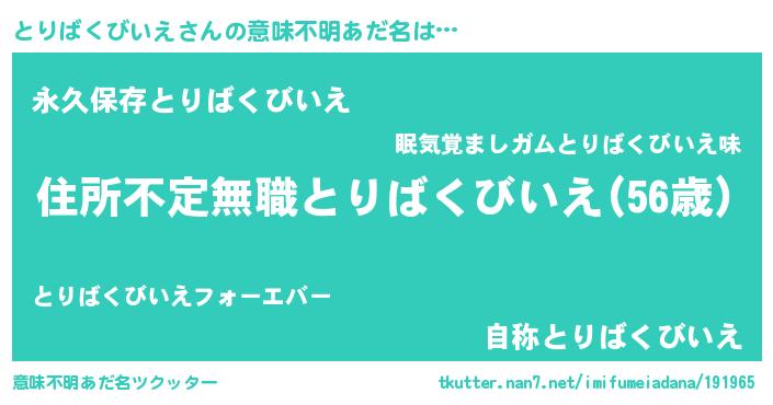 | 伝説のあだ名 | 『古より伝わる暗殺者とりばくびいえ』 |