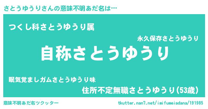 | 男性向けラノベタイトル風あだ名 | 『Re:さとうゆうりから始める異世界生活』 |