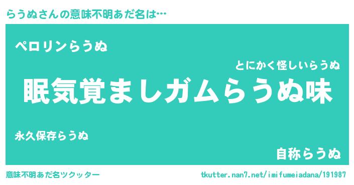 | 欧米人風あだ名 | 『ダニエルらうぬ』『マイケルらうぬ』 |