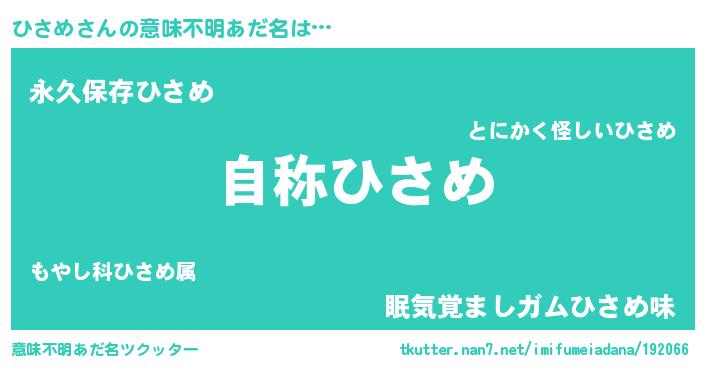 | 男性向けラノベタイトル風あだ名 | 『Re:ひさめから始める異世界生活』 |