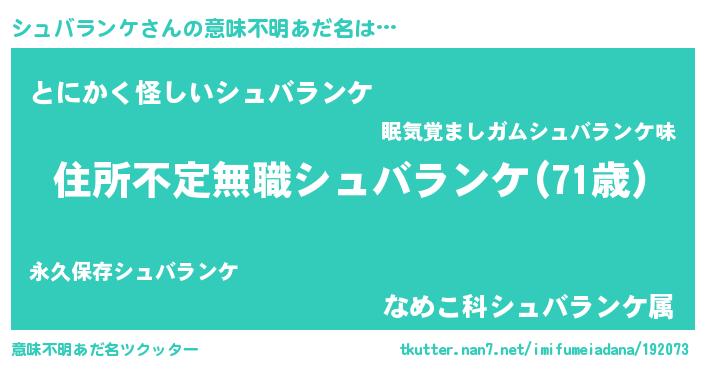 | 男性向けラノベタイトル風あだ名 | 『この素晴らしい世界にシュバランケを!』 |
