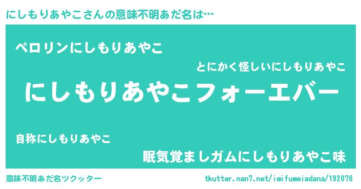 | 欧米人風あだ名 | 『にしもりあやこ・ステッグマイヤー』 |